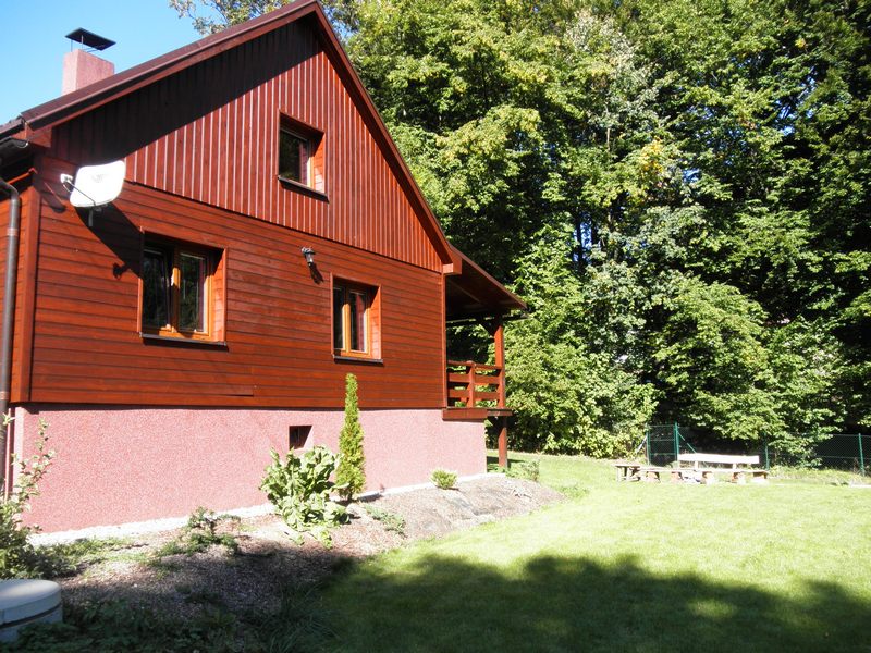 Chata stojí na samostatném oploceném pozemku, takže poskytuje dostatek prostoru pro relaxaci, hry dětí i posezení s přáteli.